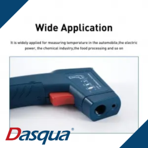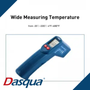 DASQUA’s Digital Infrared Thermometer measures the temperature of surfaces from a distance. It can measure temperature in boh Celsius and Fahrenheit. It is mainly for measuring temperature in heating, ventilation, and air-conditioning applications, including refrigeration and heating systems, supply and return registers, circuit breaker panels, motors and bearings, transformers, and ducts.